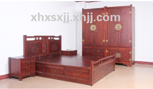 香河老榆木卧室家具 仿古床 衣柜